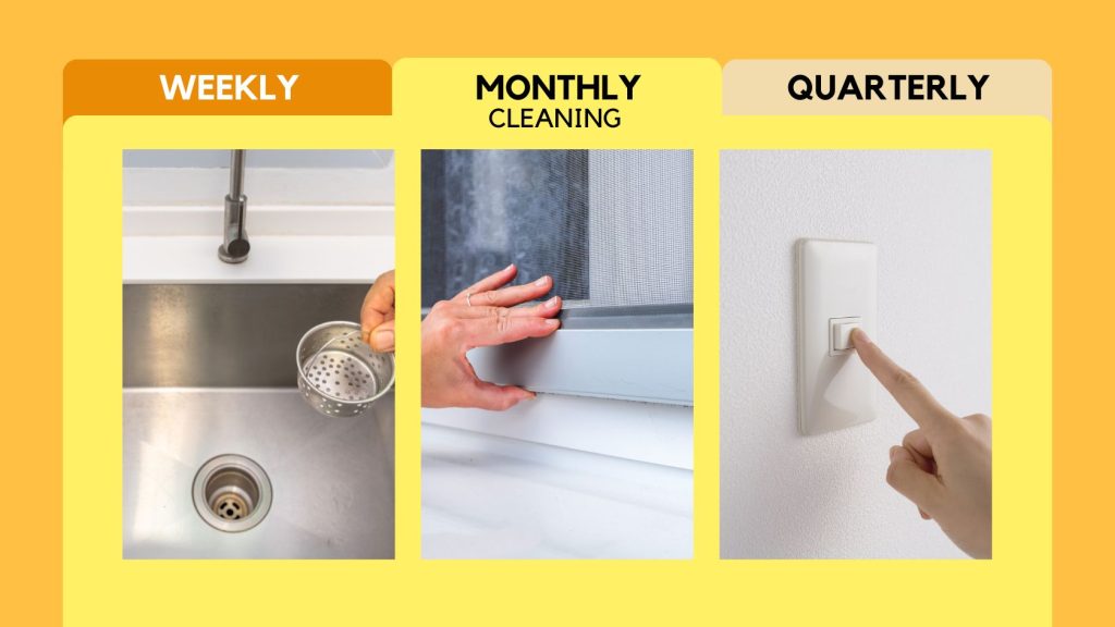 Now, monthly cleaning is when you go beyond the basics. It’s not quite the full-house overhaul yet, but detailed enough to clean spots that are quietly collecting dirt and germs.