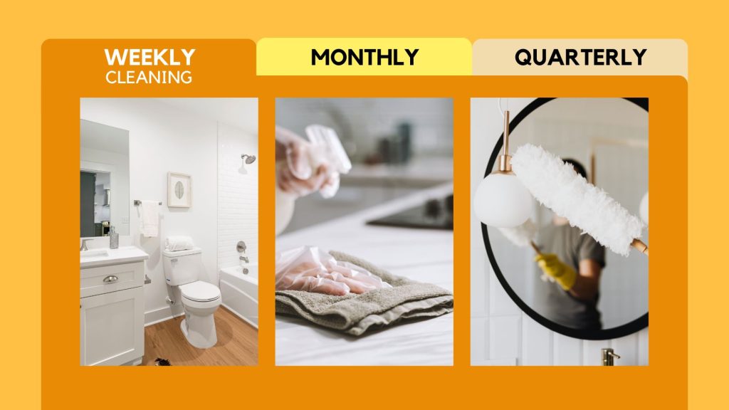 Now, monthly cleaning is when you go beyond the basics. It’s not quite the full-house overhaul yet, but detailed enough to clean spots that are quietly collecting dirt and germs.